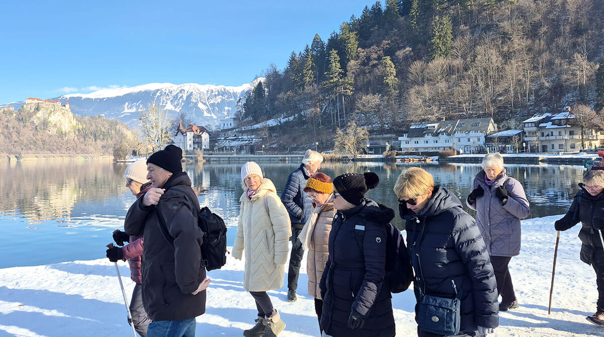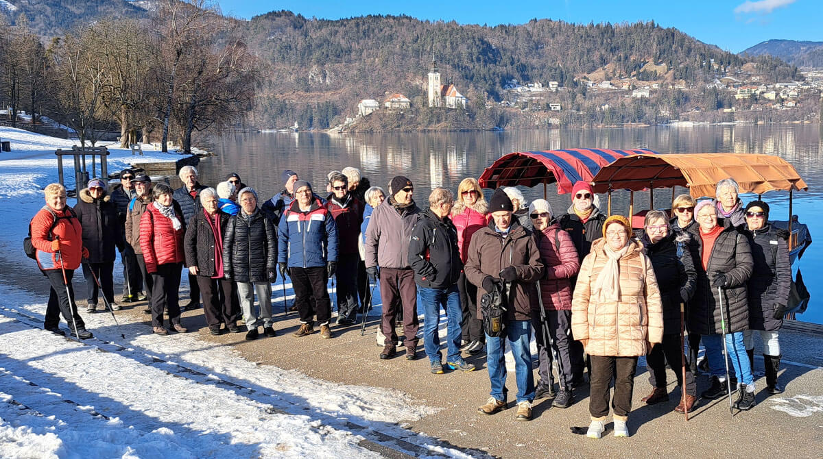 Namesto napovedanega slabega vremena, nas je pozdravilo sončno in sveže jutro. Na parkirišču pod hotelom Krim se nas je zbralo 33 in odpravili smo se na pohod okoli jezera. Cesta pri Mlinem je bila tokrat odprta. Pri tribunah v Zaki smo naredili kratek postanek za okrepčilo in se odpravili do končne postaje v gostišču Petelin, kjer so nam postregli z okusno malico, brezplačno juho in solato. Lepa gesta.