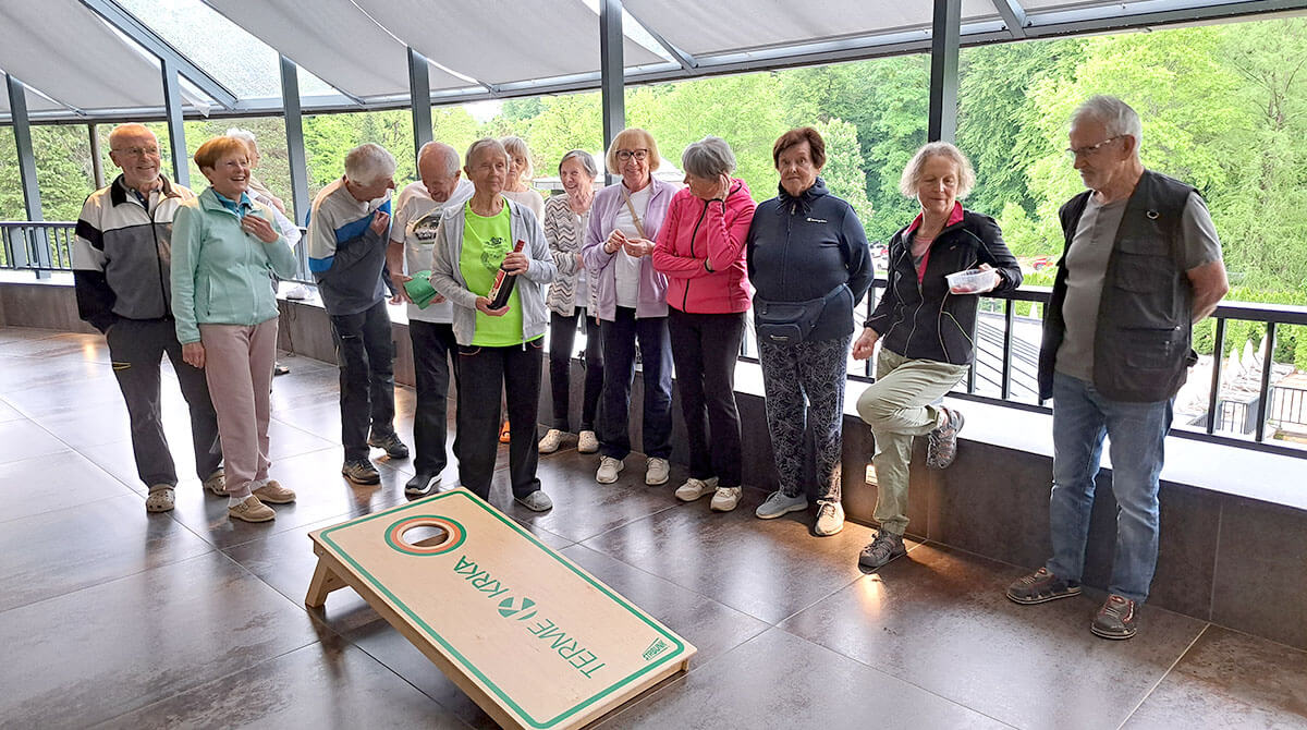 Po enotedenski rehabilitaciji v Termah Šmarješke Toplice smo se danes vrnili domov – zadovoljni, polni novega elana in lepih vtisov. Kljub nekoliko slabšemu vremenu smo se imeli res prijetno, saj smo poleg pestrega in koristnega programa odkrili tudi novo družabno igro »štrbunk«, ki nam je popestrila marsikateri dan.